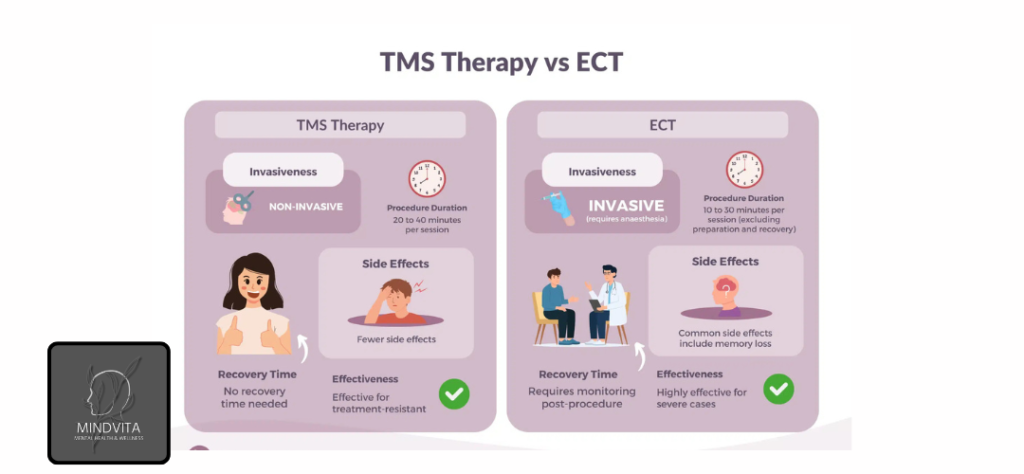 Electroconvulsive therapy, also known as electro shock therapy, is a very effective psychiatric treatment for people with serious mental illnesses who have not responded to other treatments. While electro shock therapy has had a questionable past in films and media, modern electroconvulsive therapy is a safe, controlled and very effective treatment for thousands of patients who have regained control of their lives. At Mindvita, we are committed to providing accurate and research supported information to empower patients to make informed decisions about their mental health treatment.