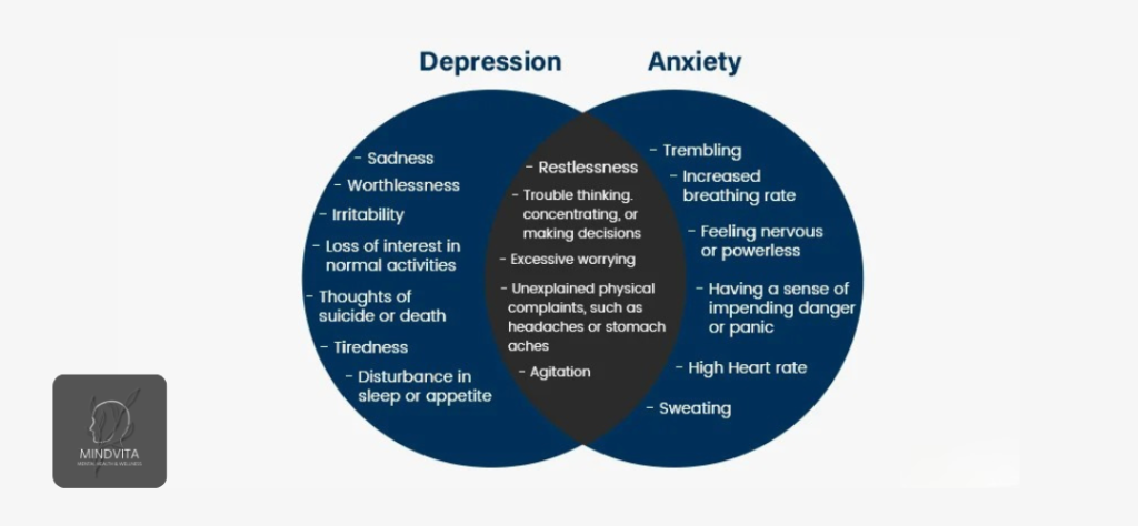 A shared perspective in anxiety and depression is the tendencies of ruminations. With rumination on thoughts there is usually a focus on negative feelings, experiences, or concerns. This makes it hard to solve the problem or find solutions and furthermore really cements negative beliefs about oneself and one’s future.